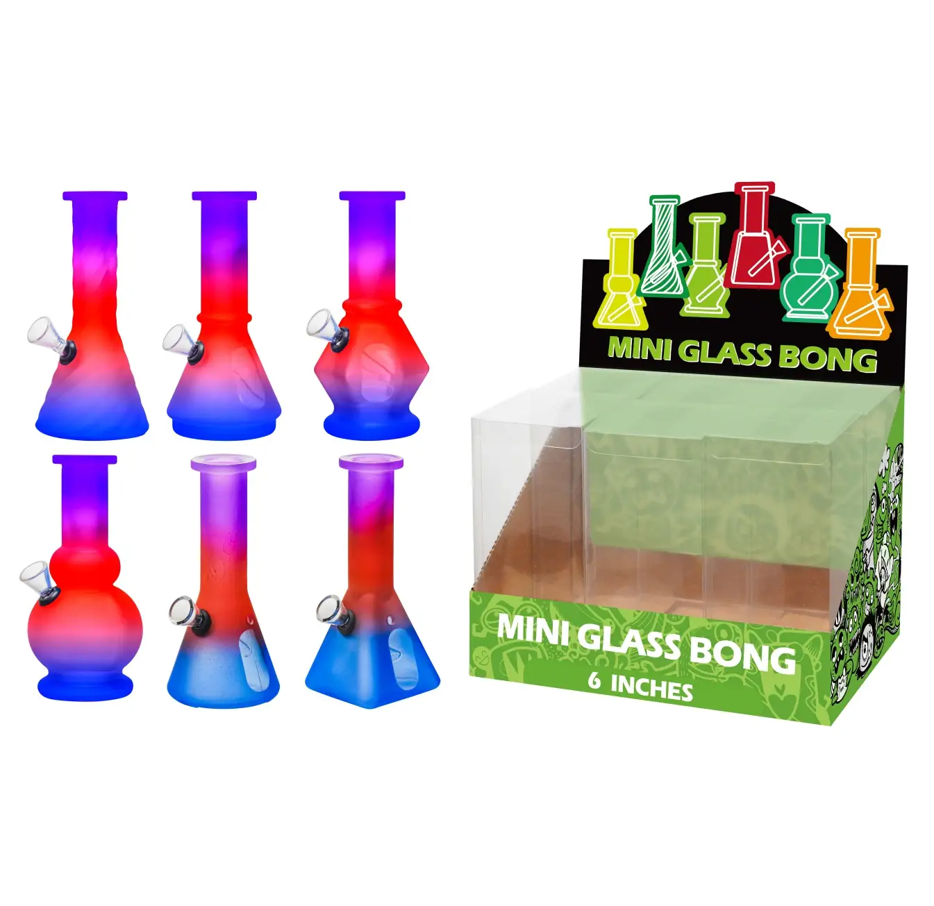 Upgrade your smoking experience with our 6 inch multi-shape 6-in-1 glass waterpipe, designed for versatility, durability, and smooth performance. This compact glass waterpipe features an innovative modular design that allows you to assemble it into six different configurations, giving you multiple smoking styles in one convenient piece.