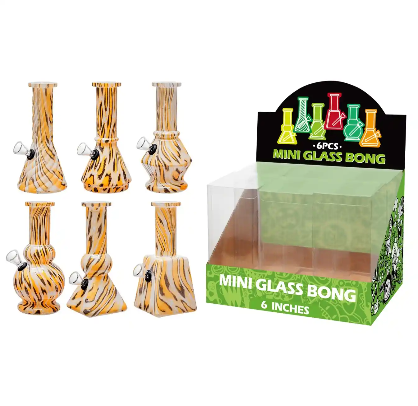 Upgrade your smoking experience with our 6 inch multi-shape 6-in-1 glass waterpipe, designed for versatility, durability, and smooth performance. This compact glass waterpipe features an innovative modular design that allows you to assemble it into six different configurations, giving you multiple smoking styles in one convenient piece.