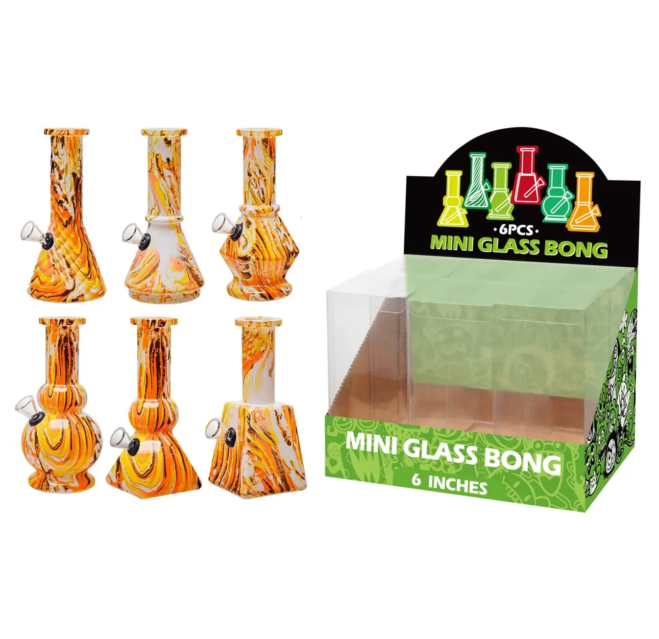 Upgrade your smoking experience with our 6 inch multi-shape 6-in-1 glass waterpipe, designed for versatility, durability, and smooth performance. This compact glass waterpipe features an innovative modular design that allows you to assemble it into six different configurations, giving you multiple smoking styles in one convenient piece.